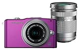 Olympus Pen E-PM1 Systemkamera (12 Megapixel, 7,6 cm (3 Zoll) Display, bildstabilisiert) lila mit 14-42mm und 40-150mm Objektiven silber Kaufen bis Heute:
